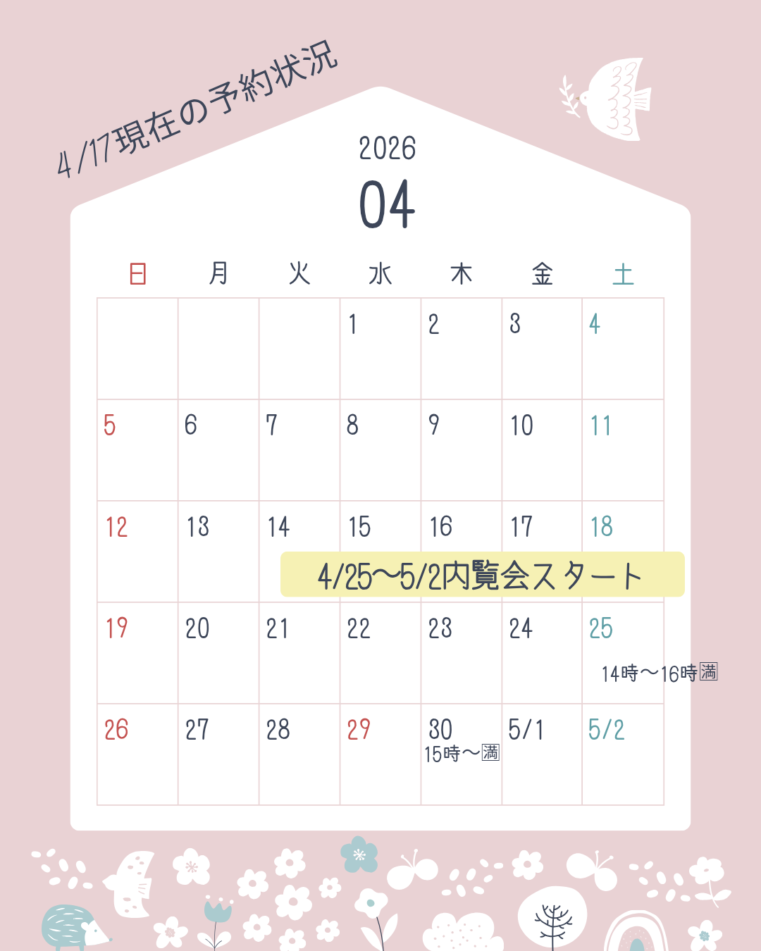 【内覧予約受付中】4/25~5/2完成内覧会を行います。